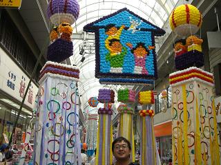 商店街の中は巨大短冊でいっぱいです