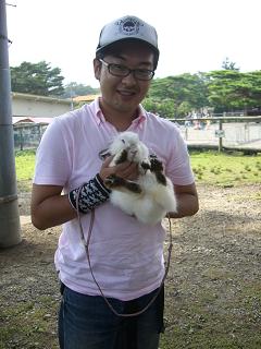「3人1羽づつ」とうrino号の声に、リードの付いたうさんこ3羽GETです