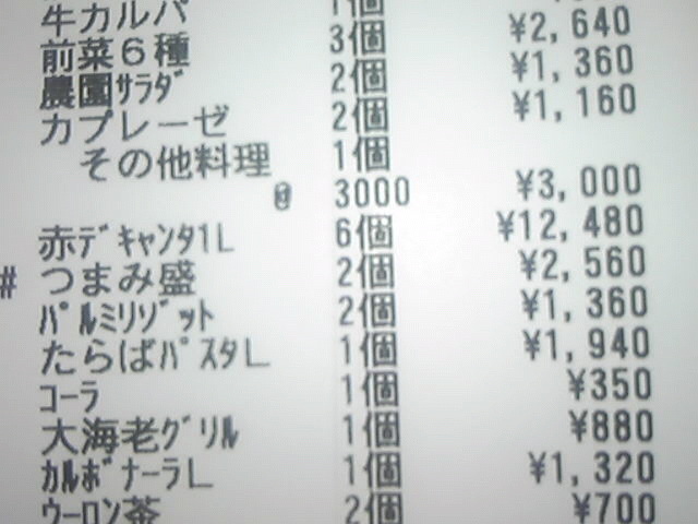 赤ワインのデキャンタ1Lを、合計6個頼んでます
