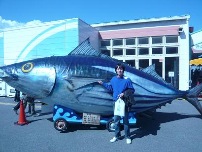 最後に、巨大カツオの前で記念撮影