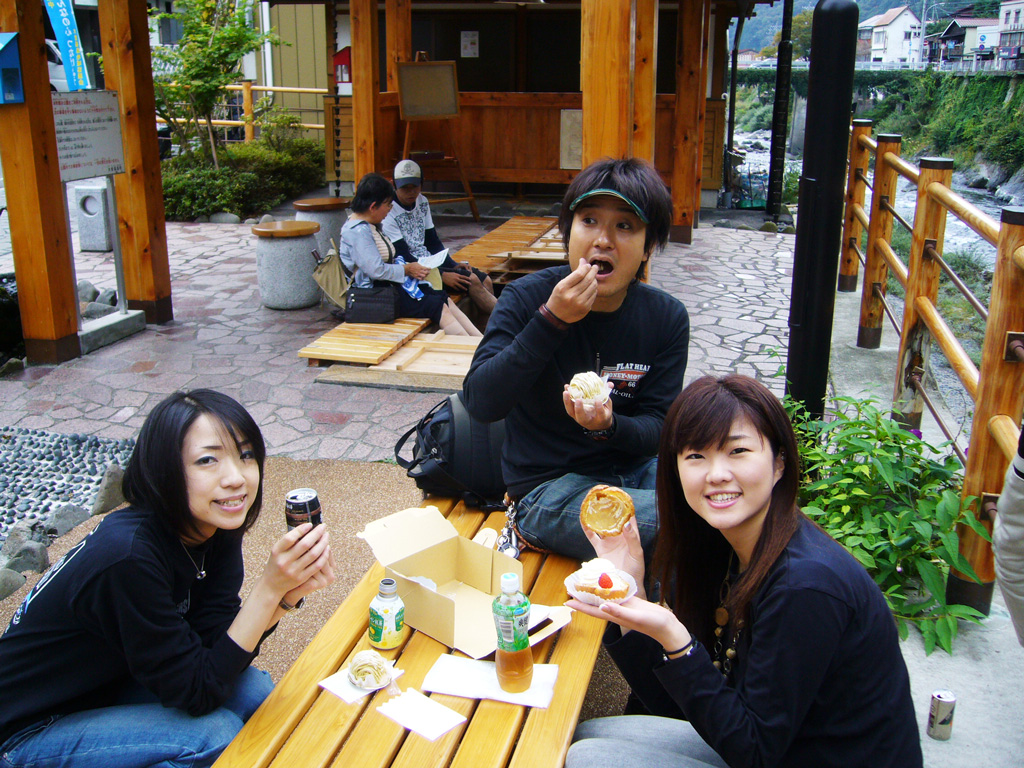 そして公共の足湯でケーキを食べだすよくわからない図。
